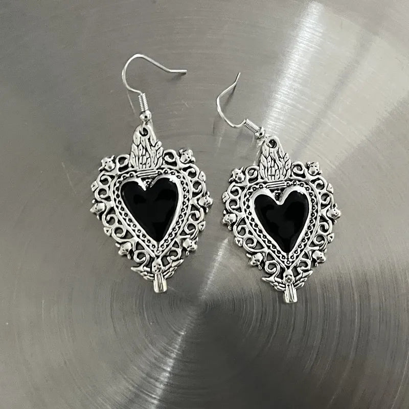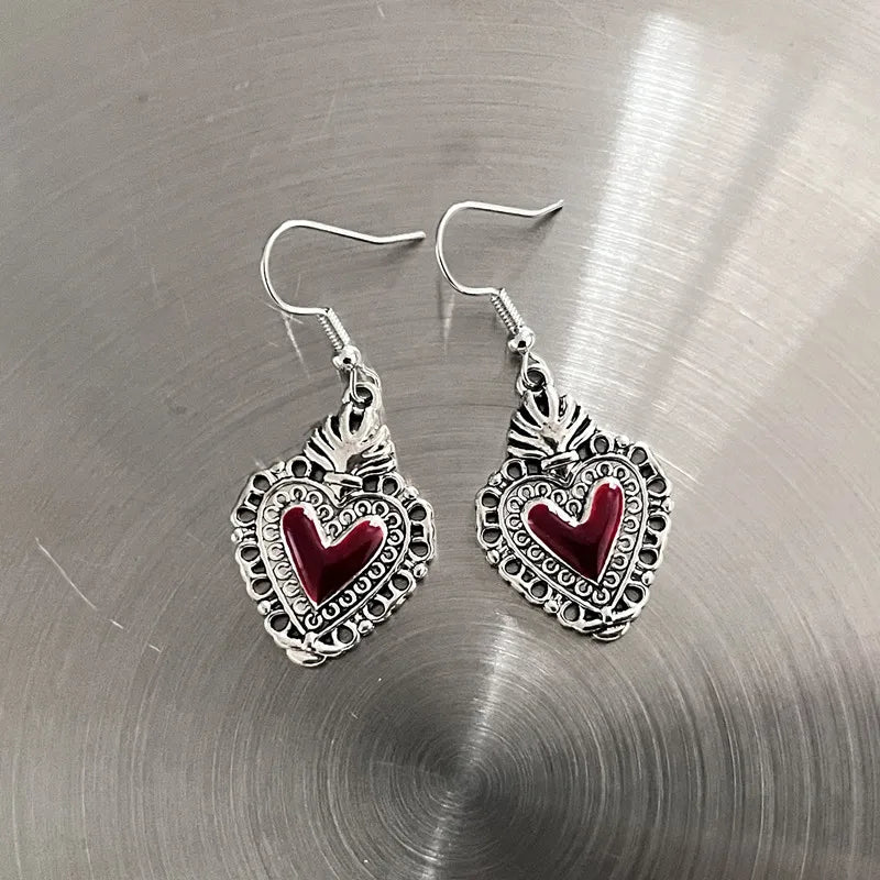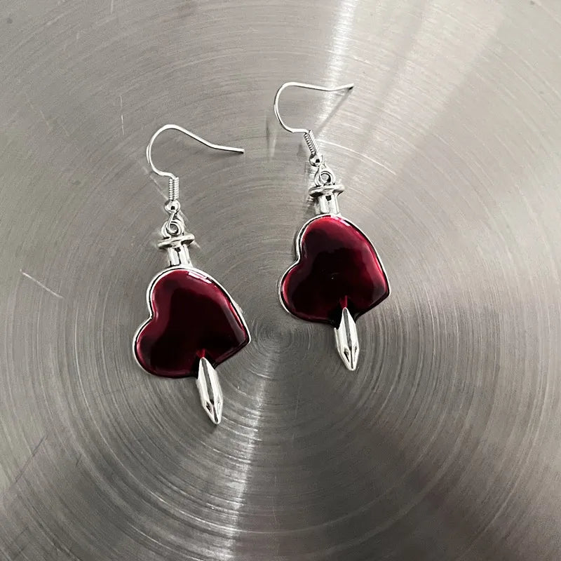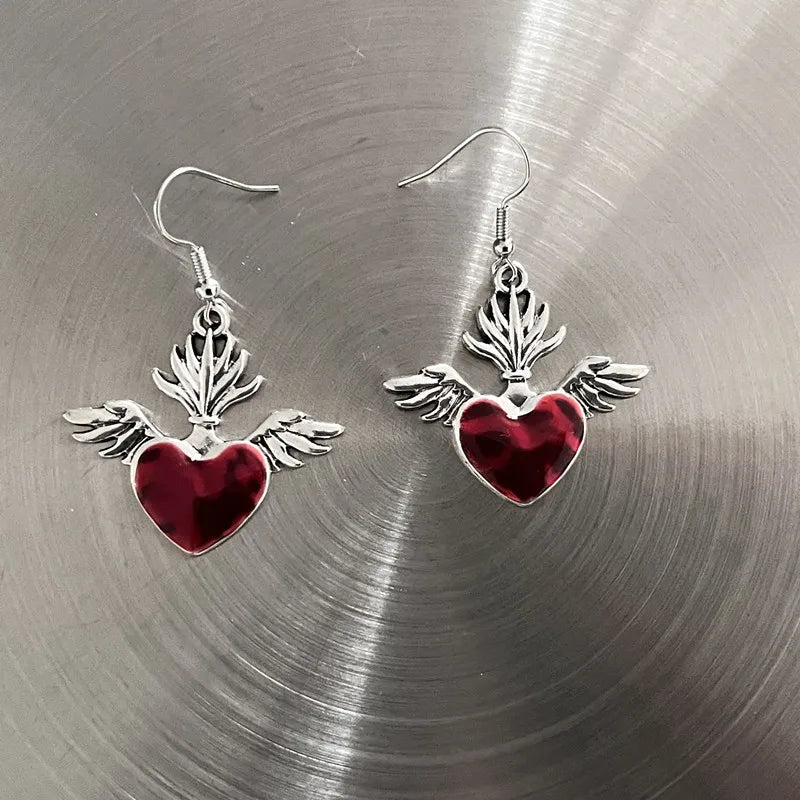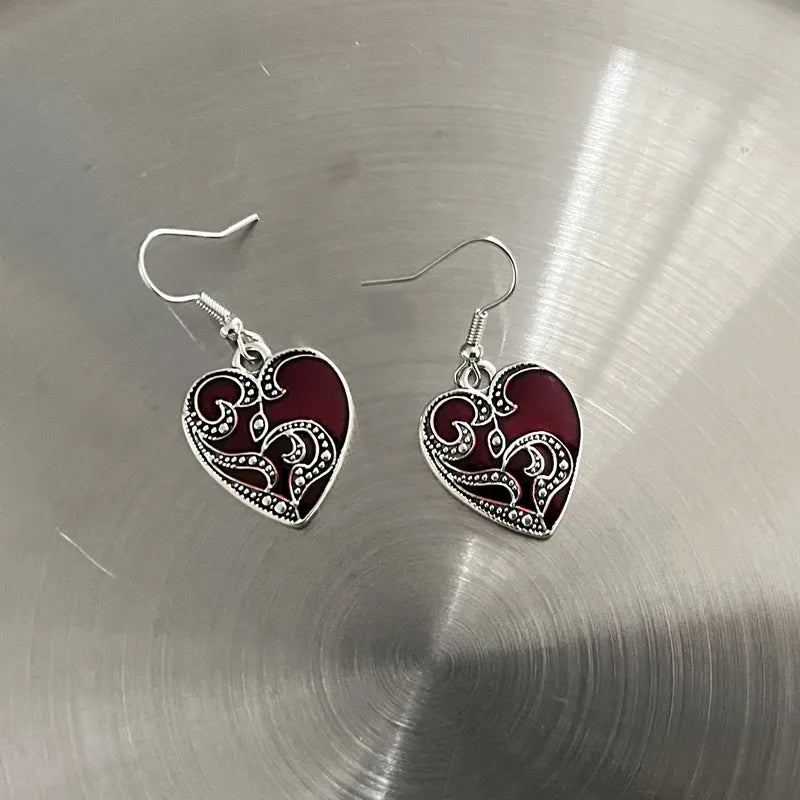 DERMEARNE New Harajuku Vintage Goth Pink Peach Heart Drop Earrings For Women Grunge Punk Halloween Aesthetic Y2k Fairy Jewelry