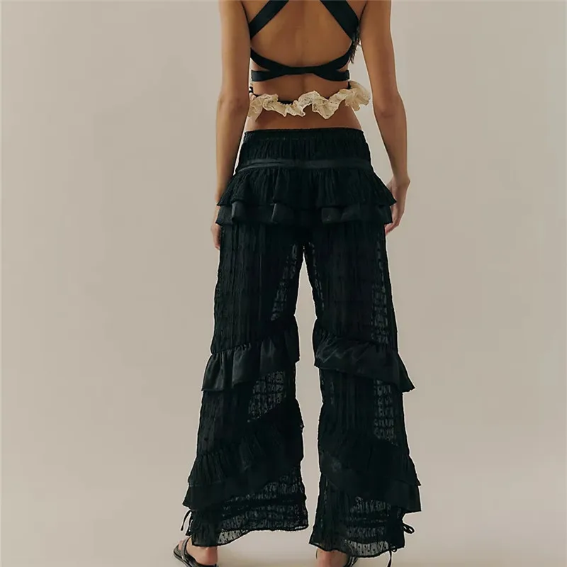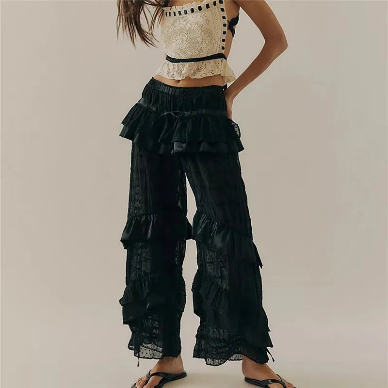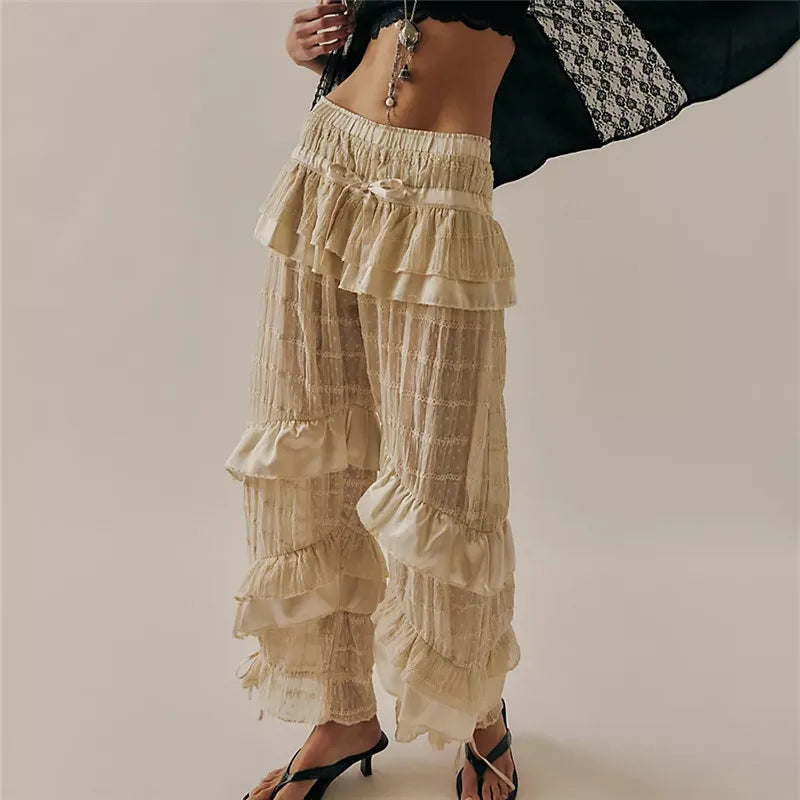 DERMEARNE Women Lace Trim FP Long Dupes Bloomers Pettipants Victorian Ruffle Pantaloons Cropped Bloomers Pants Lounge Pajama Bottoms
